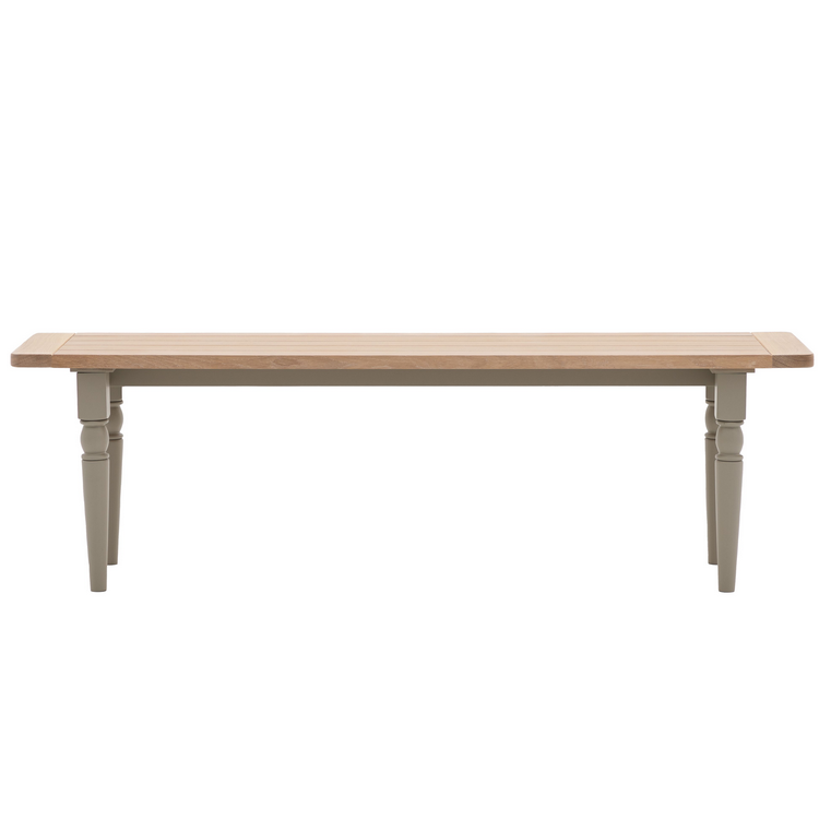 Ławka ETON wprowadza rustykalny klimat do Twojego domu. Ławka do wnętrz w klasycznym wiejskim stylu ma solidną dębową ramę, frezowane siedzisko i toczone nogi w stylu wrzeciona. Ławka pięknie prezentuje się z dodatkami takimi jak pledy czy poduszki z kolekcji Mint Grey. ETON sprawdzi się doskonale przy jadalnianym stole, w taki sposób pomieści więcej osób, niż standardowe rozwiązanie z krzesłami. Świetnie sprawdzi się również jako mebel w salonie czy przedpokoju.