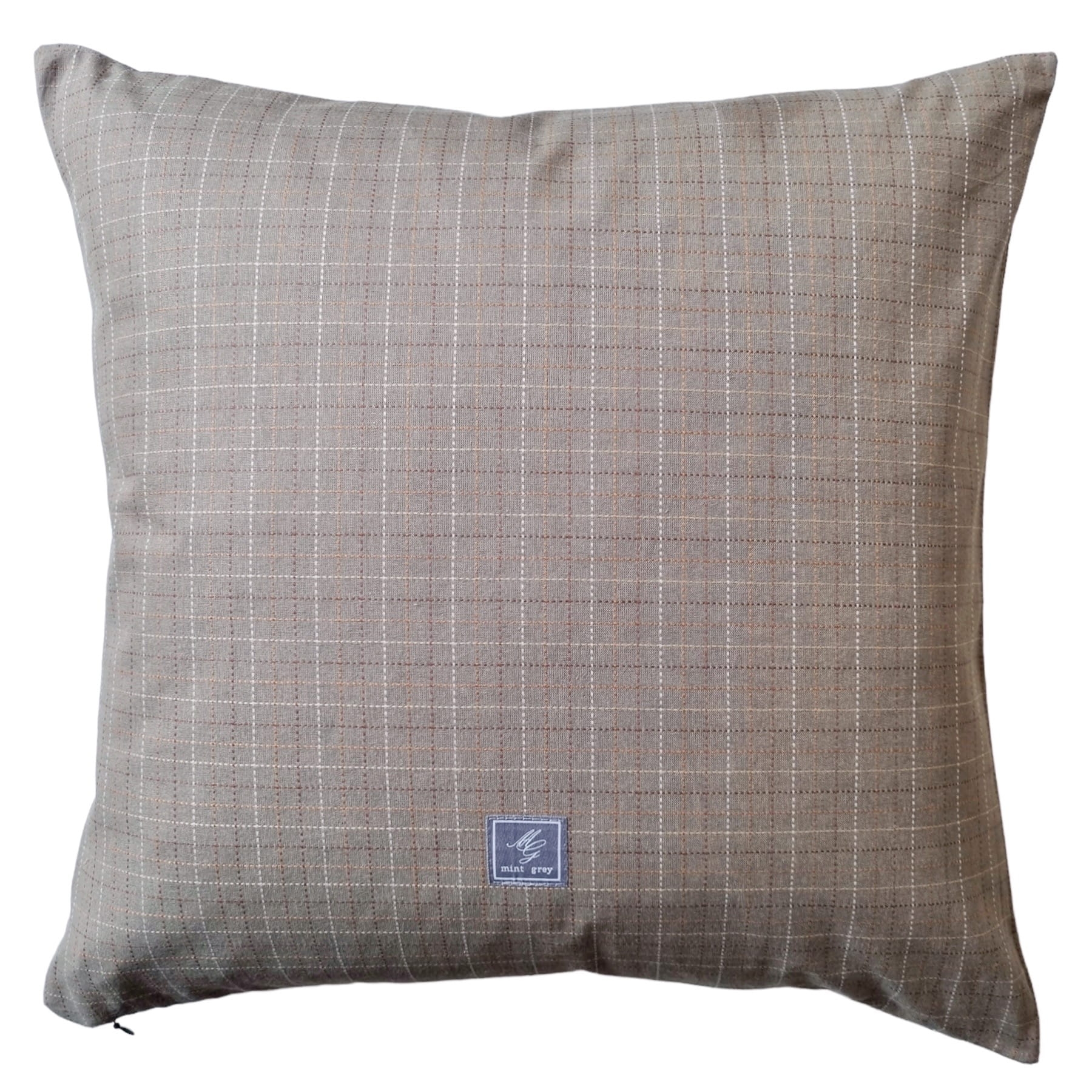 Dwustronna poszewka dekoracyjna SCOTISH II wykonana z tkaniny bawełnianej o naturalnym splocie. Na tle w kolorze pastelowej głębokiej szarości znajduje się bardzo delikatny, kolorowy kraciasty wzór. Nasze poduszki zawsze posiadają jedną stronę gładką, a drugą z naszywką Mint Grey - z doświadczenia wiemy, że wolicie je eksponować od strony naszywki, ale to to Ty decydujesz, czy ma być widoczna.