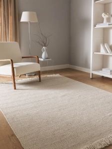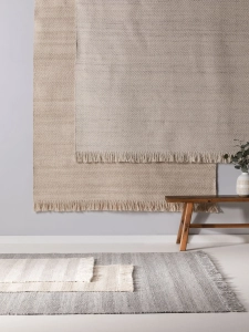 Ręcznie Tkany Dywan TINES wykonany z bawełny, wełny i poliestru wnosi do pomieszczenia swobodny, a jednocześnie uziemiający charakter. Naturalna kolorystyka beżu zapewnia ciepło i komfort w pomieszczeniu, gdzie się znajdzie. Klasyczny, tkany - gładki wzór nada odrobinę prostoty każdemu pomieszczeniu w domu. Naturalne dywany z bawełny ze względu na ich wytrzymałą i szorstką powierzchnię są odporne na zabrudzenia co sprawi, że nadają się idealnie do często używanych pomieszczeń takich jak kuchnia czy korytarz. Ze względu na ręczne wykonanie nasze dywany mogą nieznacznie różnić się rozmiarem i/lub kolorem.