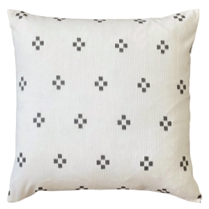 Dwustronna poszewka dekoracyjna wykonana z delikatnej tkaniny bawełnianej o bardzo ciekawej fakturze. Piękny, kremowy odcień stanowi tło dla ciemnych symetrycznych wzorów, które powstały w wyniku tkanej zielonej nici. Nasze poduszki zawsze posiadają jedną stronę gładką, a drugą z naszywką Mint Grey - z doświadczenia wiemy, że wolicie je eksponować od strony naszywki, ale to to Ty decydujesz, czy ma być widoczna.