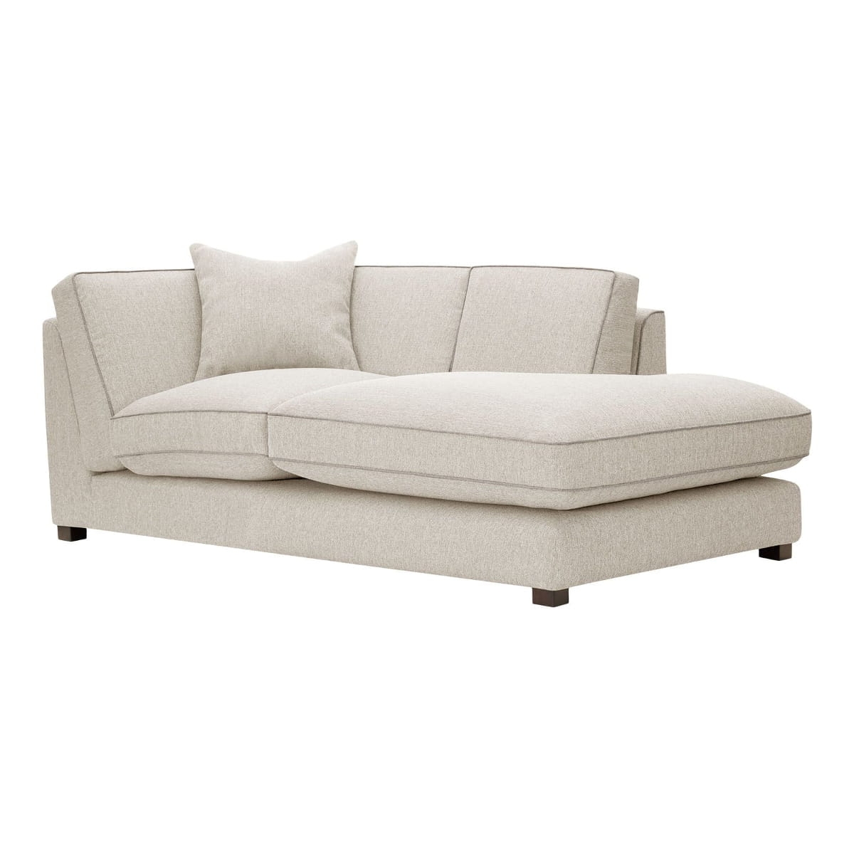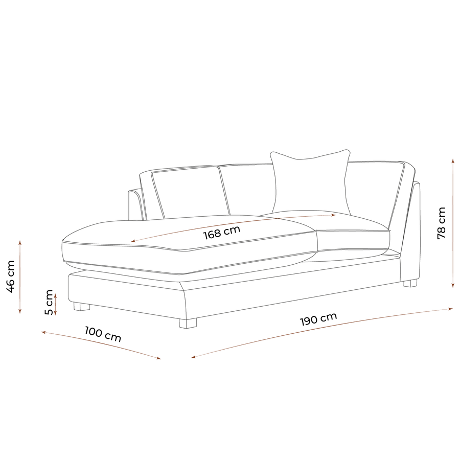 Szezlong HARGETT nowoczesny i zarazem bardzo wygodny szezlong z kolekcji HARGETT na którą składają się sofy w różnych rozmiarach, narożnik, fotel, oraz puf. Szezlong ten oparty jest na szerokiej solidnej ramie z bardzo trwałego drewna bukowego. W tym meblu za wygodę odpowiadają luźne, lekkie, niedeformujące się poduchy oparciowe i siedziskowe. Wszystkie poduszki na szezlongu posiadają ukryty zamek dzięki czemu pokrowce są zdejmowane i dużo łatwiejsze w codziennej pielęgnacji. Szezlong posiada dodatkowo jedną poduszkę która ma charakter dekoracyjny, a także dopełnia komfortu jego użytkowania.
