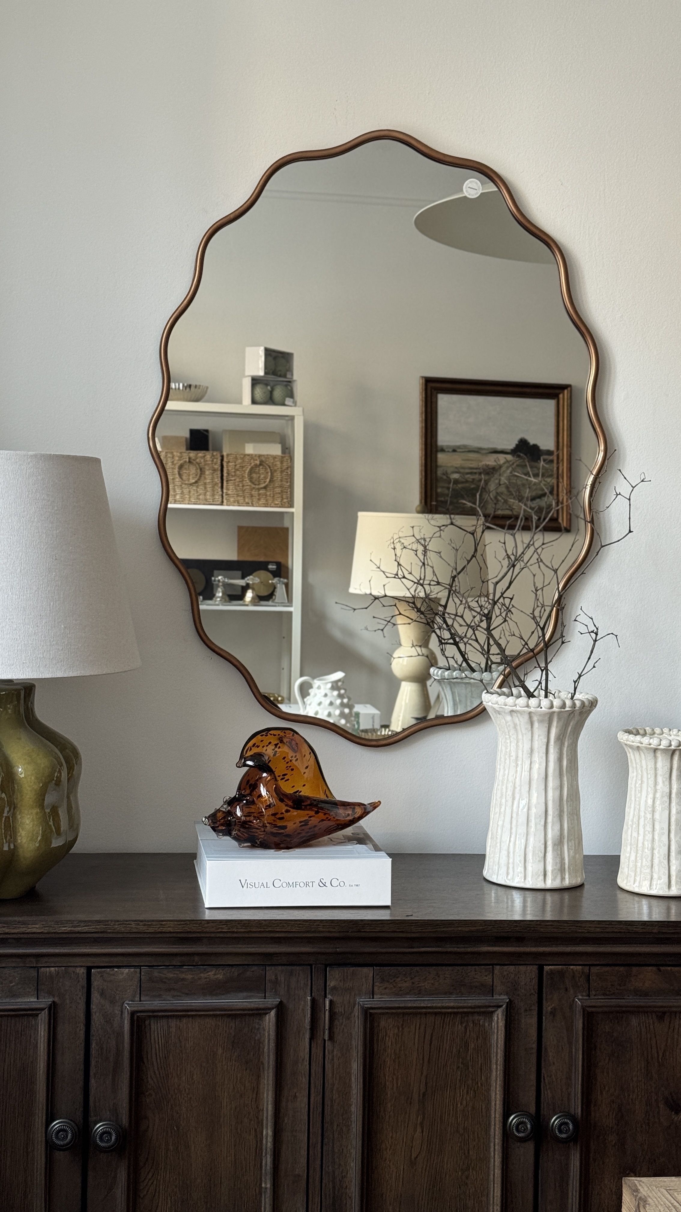 Owalne lustro TULUZA to elegancki i ponadczasowy element dekoracyjny, który subtelnie ociepla aranżację wnętrza i optycznie je powiększa. Miękka, opływowa forma przełamuje geometryczne linie mebli i ścian, wprowadzając więcej lekkości i harmonii. Lustro doskonale sprawdzi się w przedpokoju, salonie, sypialni lub nad konsolą, gdzie stanie się stylowym punktem centralnym i naturalnie odbije światło, rozjaśniając przestrzeń. Owalny kształt sprawia, że model ten pasuje zarówno do wnętrz nowoczesnych, modern classic, jak i aranżacji w stylu modern farmhouse, dodając im elegancji bez nadmiernej dekoracyjności.