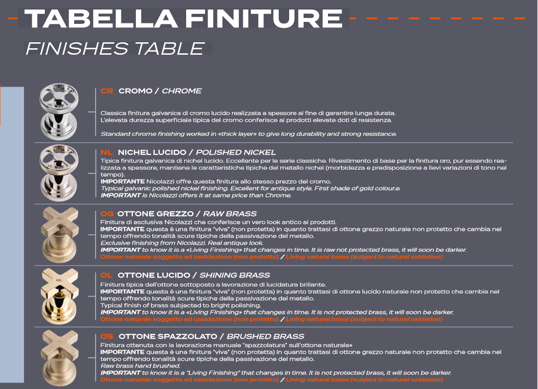 Nicolazzi to włoska firma z tradycjami. Swoją działalność rozpoczęli w 1960 roku, mimo to, nieustannie produkują armaturę tradycyjnymi metodami we Włoszech. Ofertę tego producenta wyróżnia bogaty wybór dostępnych kolorów. Projekty marki nie podążają ślepo za ciągle zmieniającą się modą. Cechuje je: elegancja, uniwersalność, estetyczność, gustowność. Armatura Nicolazzi to klasa sama w sobie.