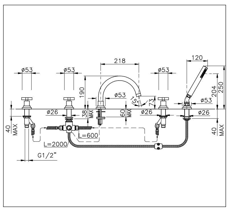 Bateria Wannowa z Zestawem Prysznicowym NICOLAZZI MAC KINLEY 05 - Różne Wykończenia
