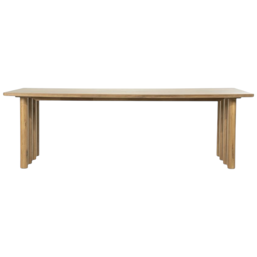 Stół Jadalniany BRIDGE wykonany został z litego drewna dębowego. Zaprojektowany z myślą o wnętrzach, w których liczy się równowaga między prostotą a wyrafinowaniem. Blat prezentuje naturalny rysunek słojów, a jego lakierowane wykończenie chroni powierzchnię przed codziennym użytkowaniem, zachowując przy tym przyjemny, szlachetny mat.