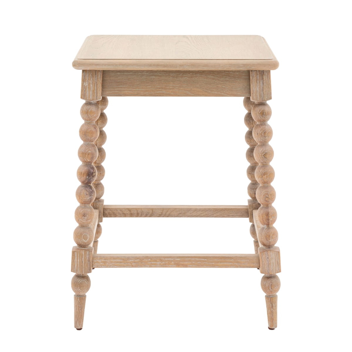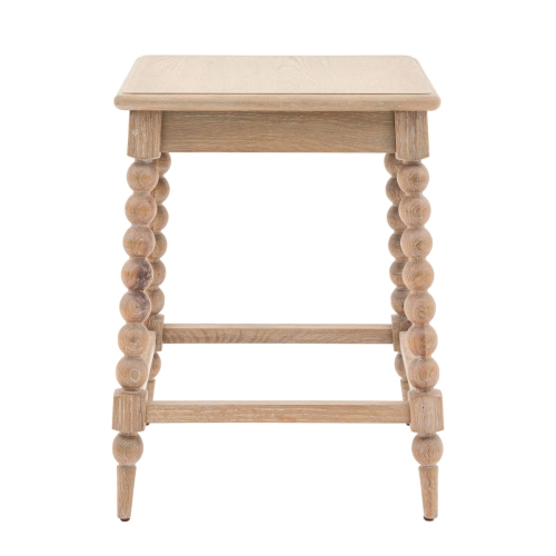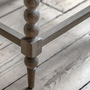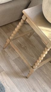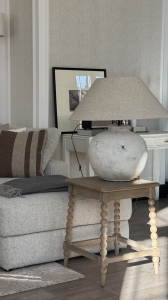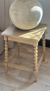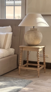 Kolekcja mebli TISIAN to ukłon w stronę klasyki. Kolekcja została zaprojektowana jako przemyślane połączenie ręcznie toczonych nóg mebli oraz wyjątkowej, biszkoptowej tapicerki. Stolik pomocniczy z tej kolekcji to niesamowicie urokliwy, przytulny i ciepły mebel. Odnajdzie się on świetnie w salonie, przy sofie, w przedpokoju, a nawet jako stolik nocny po bokach łóżka. Na swoim blacie pomieści takie przedmioty jak lampę, wazon, klucze, książki, podstawowe kosmetyki czy lusterko. Jego zdobione nogi to klucz sukcesu TISIAN - mają niesamowity wdzięk.