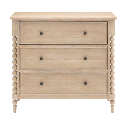 Kolekcja mebli TISIAN to ukłon w stronę klasyki. Drewniana komoda z 3 pojemnymi szufladami świetnie sprawdzi się w sypialni, salonie lub korytarzu, a jednocześnie ozdobi pomieszczenie, z racji na piękny design mebla. Komoda posiada 3 szuflady w których bez problemu zmieścisz ubrania, bieliznę lub inne najpotrzebniejsze przedmioty codziennego użytku. Komoda dostępna w dwóch rozmiarach.