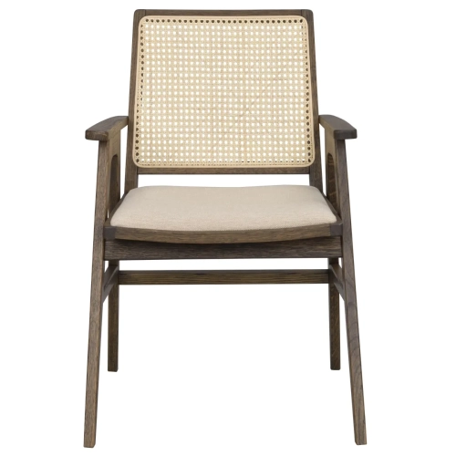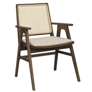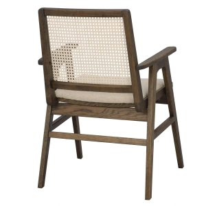 Krzesło COMFLY wykonane z lakierowanego dębu to modne krzesło z certyfikatem FSC.Oparcie z plecionego naturalnego rattanu tworzy piękną, spójną całość z dębem oraz beżową tapicerką na siedzisku mebla. Wytrzymała tkanina wraz z dobrze zaprojektowanymi podłokietnikami sprawiają, że krzesło jest wyjątkowo wygodne. Warto również zwrócić uwagę na kąt nachylenia siedziska, dzięki któremu komfort użytkowania wzrośnie. Krzesło świetnie odnajdzie się zarówno w nowoczesnych wnętrzach, jak i klimatach vintage, z racji na prostą formę, naturalne materiały oraz klasyczny projekt. Doskonale sprawdzi się przy stole, biurku, czy też jako dodatkowe siedzisko w pokoju dziennym. Najlepiej zaprezentuje się w zestawie.