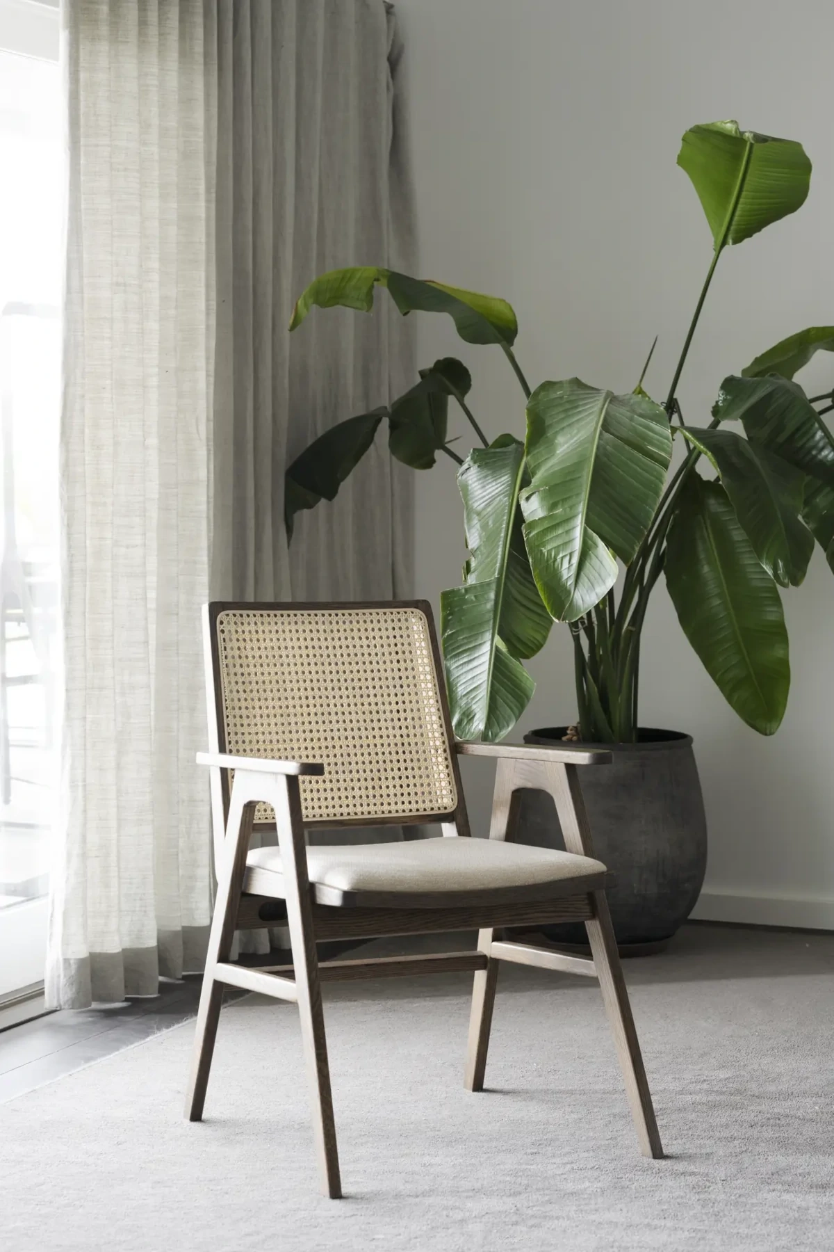Krzesło COMFLY wykonane z bielonego dębu to modne krzesło z certyfikatem FSC.Oparcie z plecionego naturalnego rattanu tworzy piękną, spójną całość z dębem oraz beżową tapicerką na siedzisku mebla. Wytrzymała tkanina wraz z dobrze zaprojektowanymi podłokietnikami sprawiają, że krzesło jest wyjątkowo wygodne. Warto również zwrócić uwagę na kąt nachylenia siedziska, dzięki któremu komfort użytkowania wzrośnie. Krzesło świetnie odnajdzie się zarówno w nowoczesnych wnętrzach, jak i klimatach vintage, z racji na prostą formę, naturalne materiały oraz klasyczny projekt. Doskonale sprawdzi się przy stole, biurku, czy też jako dodatkowe siedzisko w pokoju dziennym. Najlepiej zaprezentuje się w zestawie.