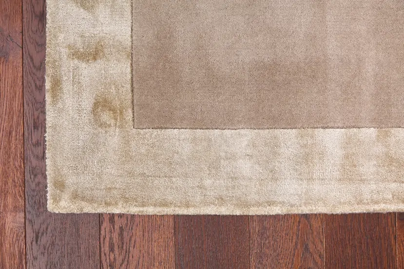 Stonowany dywan o klasycznym wzorze. Obwódka z wiskozy z lekkim połyskiem. Kolor Taupe może wpadać delikatnie w odcienie fioletów, zieleni lub różu.
