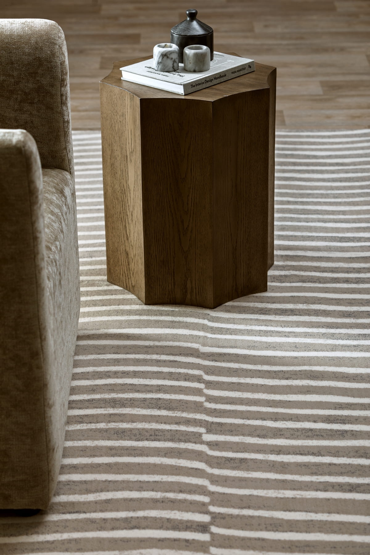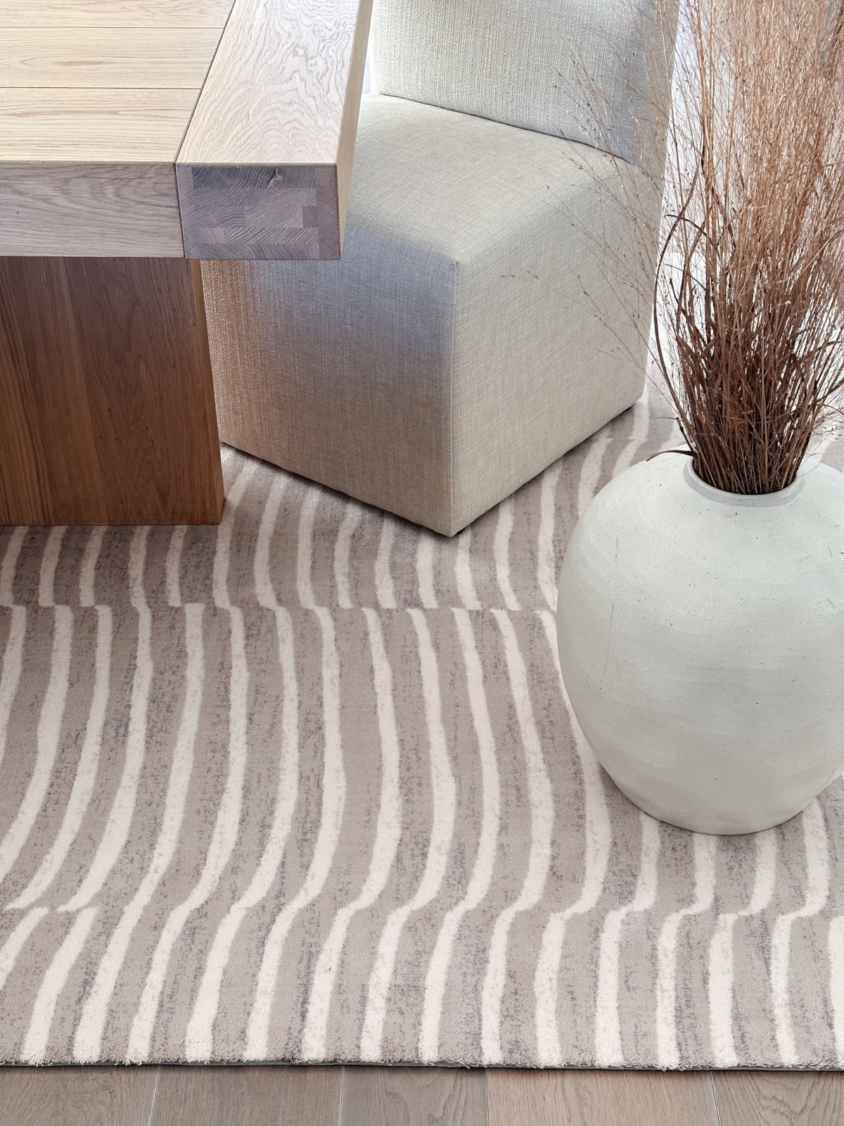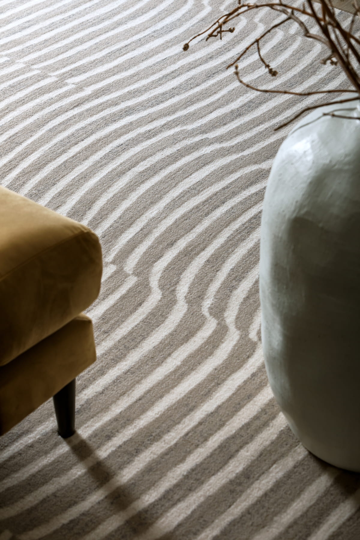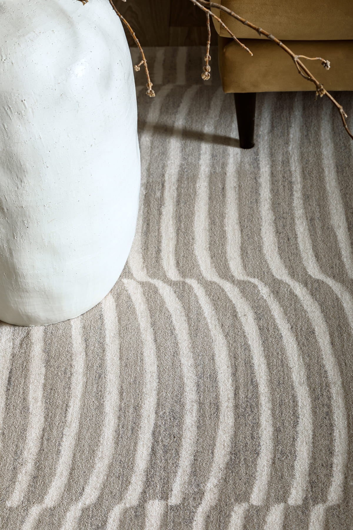 Każdy wzór tej kolekcji to subtelne nawiązanie do nieregularnych rys marmuru, delikatnych faktur gliny czy surowego piękna minerałów. Paleta barw oscyluje wokół stonowanych beży, ciepłych szarości i ziemistych tonów, co sprawia, że dywany doskonale komponują się zarówno z nowoczesnymi, jak i klasycznymi aranżacjami.|