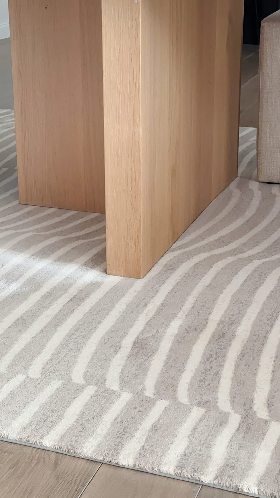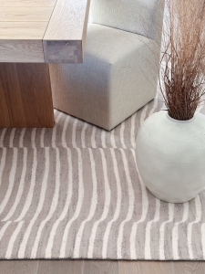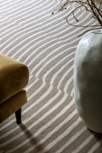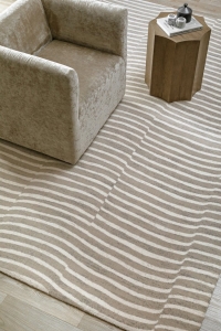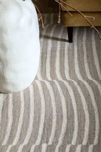 Dywan TIDES - Beżowy to dekoracyjny dywan o ciekawym zdobieniu. Charakteryzuje go ciekawy układ nieregularnych grubych linii na całej powierzchni dywanu, układający się w spójną całość. Dywan dodaje nowoczesnego klimatu , nadając wnętrzom wyjątkowego charakteru. Stanowić będzie reprezentacyjną ozdobę pomieszczenia. Wyróżnia się wysoką gęstością okrywy runowej, która ma wysokość 10 mm. Do wyprodukowania produktów z tej kolekcji użyto szlachetnej wełny z Nowej Zelandii, która zapewnia wysoką jakość produktu oraz szeroki wachlarz naturalnych właściwości. Ponadto poprzez jakość materiału, dywany nie elektryzują się, co dodaje łatwości w codziennym użytkowaniu.