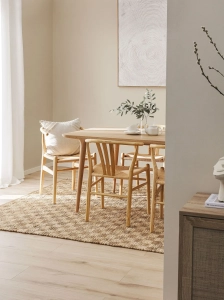NELIO to piękny jutowy dywan, który zachwyca geometrycznym wzorem oraz klasyczną, beżowo-brązową kolorystyką. Dzięki niemu wprowadzisz do swojego wnętrza harmonię i przytulność. Dywan świetnie sprawdzi się w takich pomieszczeniach jak: salon, sypialnia, przedpokój, a nawet kuchnia czy łazienka. Doskonale dopasuje się do wielu przestrzeni - dzięki uniwersalnej formie dobrze będzie wyglądał w różnych projektach i stylach wykończeń wnętrz. Najlepiej dopasuje się do klimatów boho, rustykalnych, skandynawskich oraz naturalnych aranżacji z drewnianymi meblami. Ponadto, dywan NELIO występuje w kilku rozmiarach, dzięki czemu dopasujesz go idealnie pod swoje wymagania i preferencje.