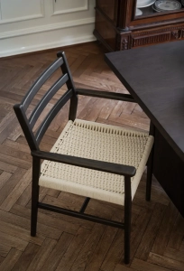 Krzesło DARLAN wykonane zostało z litego lakierowanego dębu. Doskonale pasuje do niego oryginalne siedzisko z plecionego sznurka papierowego, które inspirowane jest klasycznym wzornictwem z lat 50. i 60. Solidne wykonanie oraz najwyższej jakości materiały sprawią, że krzesło z pewnością przetrwa próbę czasu, a klasyczny projekt oraz kolorystyka mebla nie znudzą się szybko. Zaokrąglone kształty, wyprofilowane oparcie oraz podłokietniki, sprawią, że produkt nie tylko tworzy lekkie wrażenie, ale jest też niezwykle komfortowy i wygodny w użytkowaniu. Krzesło DARLAN posiada certyfikat FSC®, co oznacza, że zawiera drewno, które bierze pod uwagę ludzi i środowisko.