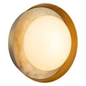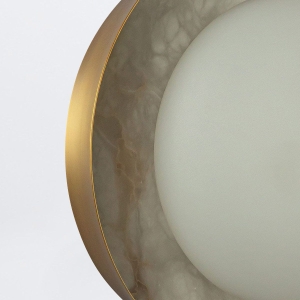 AURELLE to kinkiet o rzeźbiarskiej formie, w którym matowa kula światła otulona jest elegancką ramą w kolorze antycznego mosiądzu, z subtelnym alabastrem w tle. Jego miękkie, rozproszone światło tworzy nastrojową aurę, idealną zarówno do użytku pojedynczo, jak i w kompozycjach ściennych. To propozycja dla wnętrz, w których oświetlenie ma być zarówno funkcjonalne, jak i dekoracyjne. W kolekcji AURELLE występują dwa rodzaje kinkietów - podłużny oraz okrągły oraz żyrandol, wszystkie lampy wykonane są w dwóch wykończeniach - brązu oraz antycznego mosiądzu.