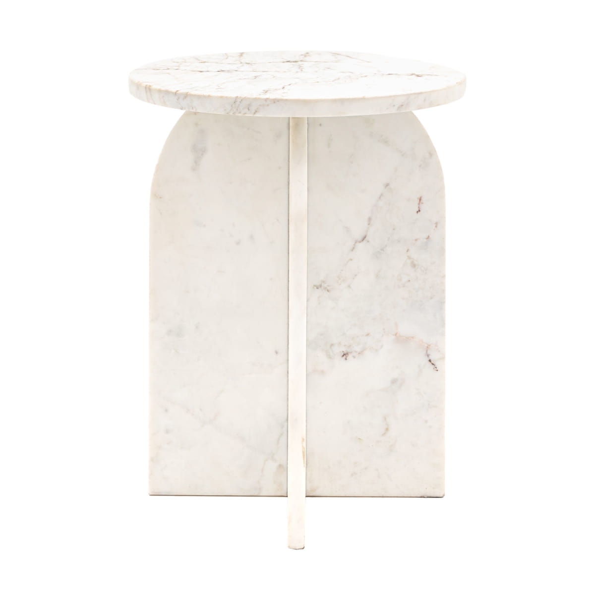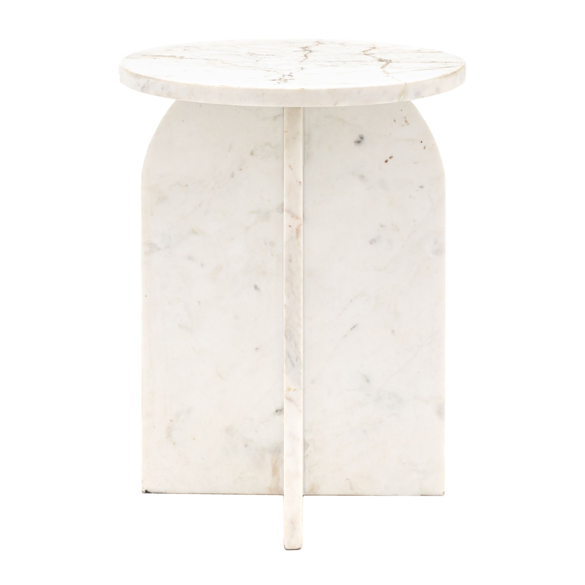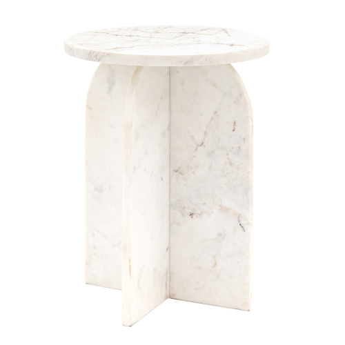 Okrągły stolik pomocniczy AMALFI to element, który w Twojej przestrzeni doda stylu i charakteru. Solidny blat i podstawa doskonale ukazują naturalny wzór marmuru. Podstawa z czterech prostych elementów skrzyżowanych ze sobą, tworzy oszałamiający efekt. Mebel jest piękny i efektowny w swej prostocie. Idealnie sprawdzi się w nowoczesnych wnętrzach. AMALFI może również zastąpić klasyczny stolik nocny w sypialni, a jego średnica pozwoli na komfortowe umieszczenie na nim lampy, dekoracji lub książek.