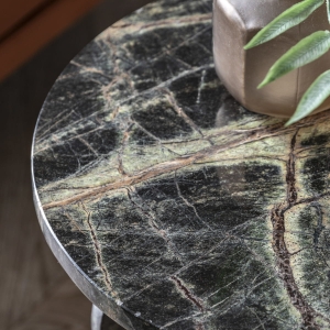 Okrągły stolik pomocniczy AMALFI to element, który w Twojej przestrzeni doda stylu i charakteru. Solidny blat i podstawa doskonale ukazują naturalny wzór marmuru. Podstawa z czterech prostych elementów skrzyżowanych ze sobą, tworzy oszałamiający efekt. Mebel jest piękny i efektowny w swej prostocie. Idealnie sprawdzi się w nowoczesnych wnętrzach. AMALFI może również zastąpić klasyczny stolik nocny w sypialni, a jego średnica pozwoli na komfortowe umieszczenie na nim lampy, dekoracji lub książek.