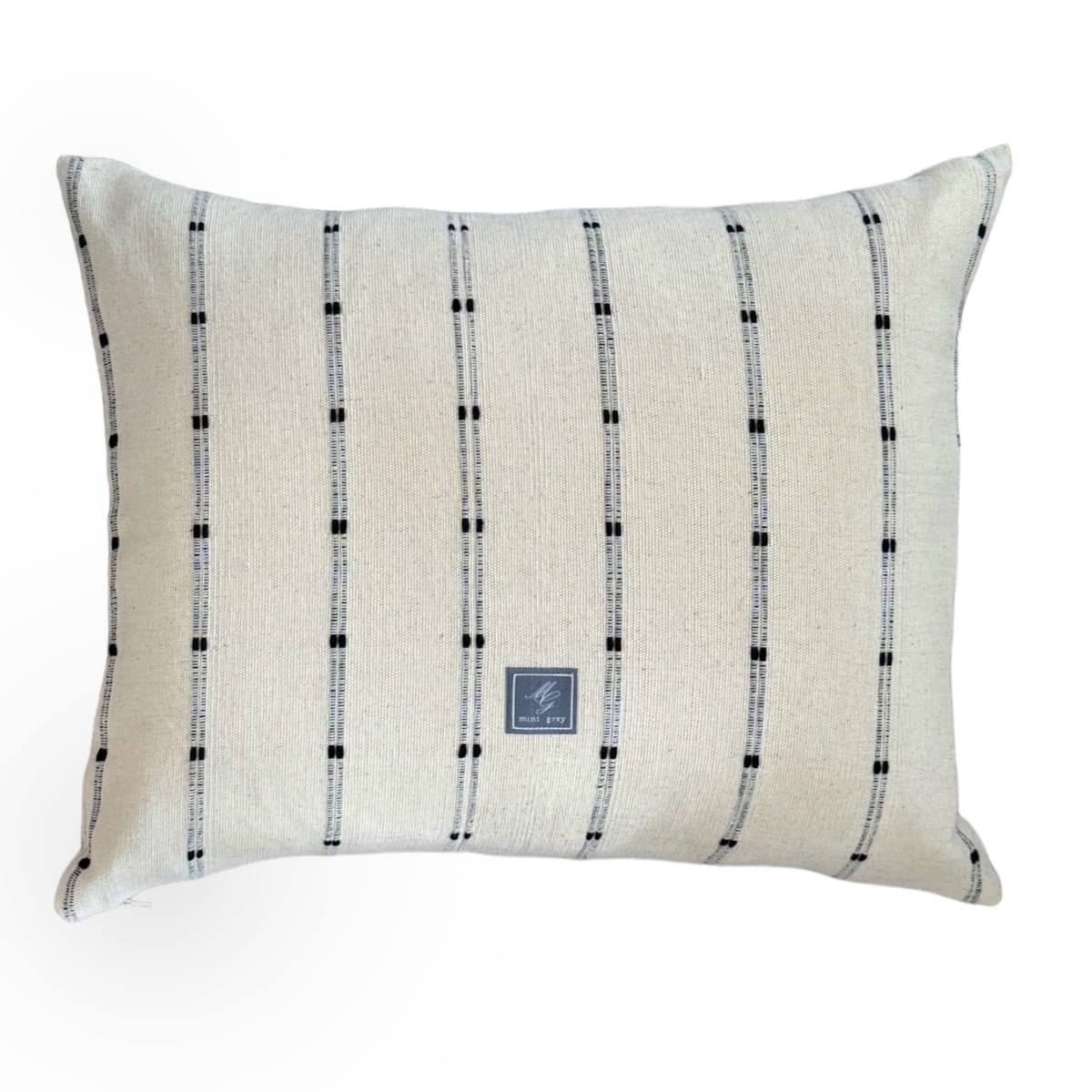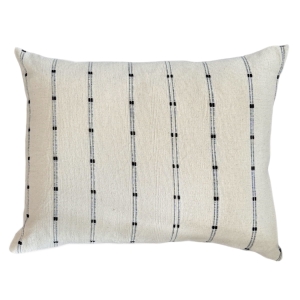 Poduszka FLOSS wykonana została w jasnej kolorystyce, złamanej czarnymi przeszyciami. Wpasuje się zatem do wielu wnętrz, gdzie urozmaici i ociepli otoczenie. Poduszka posiada z jednej strony naszywkę z logo Mint Grey, zapinana jest na suwak. Wykonana z najwyższą dbałością o detale.