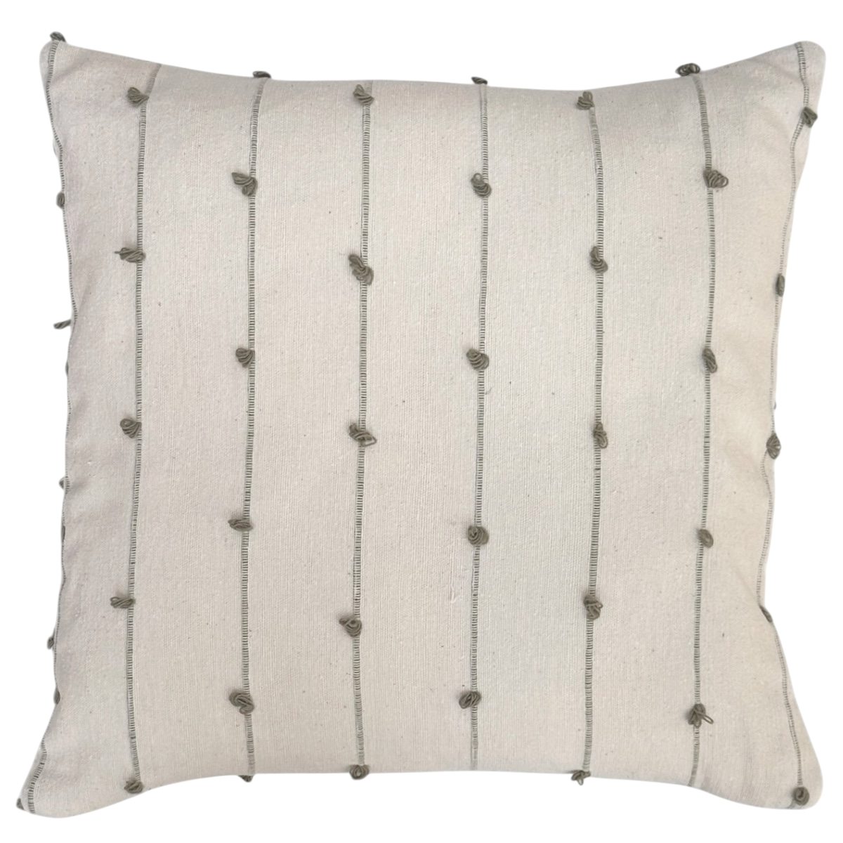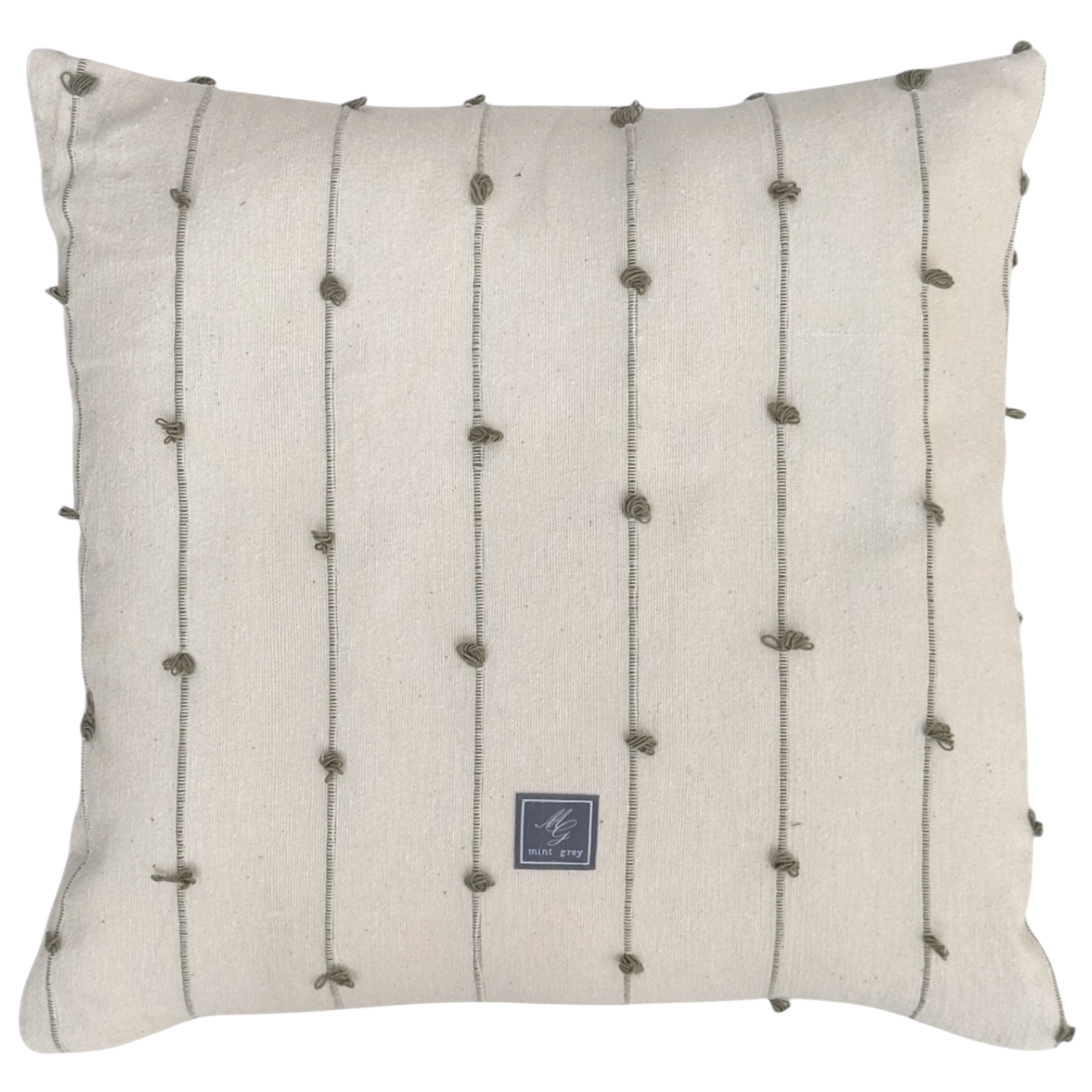 Dwustronna poszewka dekoracyjna wykonana z delikatnej tkaniny bawełnianej o wysokiej jakości. Nasze poduszki zawsze posiadają jedną stronę gładką, a drugą z naszywką Mint Grey - z doświadczenia wiemy, że wolicie je eksponować od strony naszywki, ale to to Ty decydujesz, czy ma być widoczna. Uroku dodają jej zielone akcenty, idealne aby delikatnie ożywić przestrzeń.