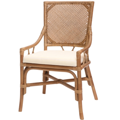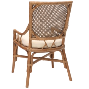 Krzesło ARTICO to połączenie naturalnego rattanu i bawełny, które wprowadza do wnętrza lekkość i styl inspirowany śródziemnomorskim klimatem. Ażurowe oparcie nadaje mu oryginalny wygląd, a miękkie poduszki z bawełnianym pokryciem zapewniają wygodę podczas codziennego relaksu. Idealnie sprawdzi się w salonie, ogrodzie zimowym czy na zadaszonym tarasie, tworząc przytulną i naturalną przestrzeń do wypoczynku. Dzięki wysokiej jakości wykonania oraz użyciu najlepszej jakości materiałów, krzesło zostanie z Tobą na długie lata w nienaruszonym stanie.