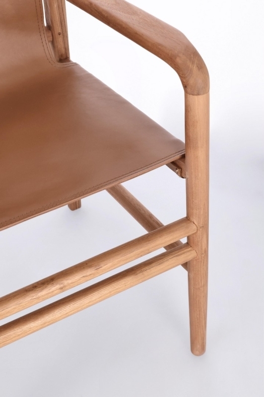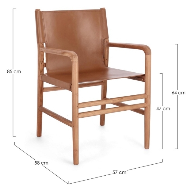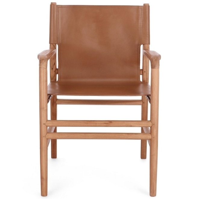 Skórzane Krzesło z Podłokietnikami CHARM - Brąz