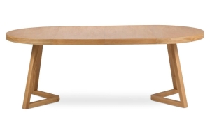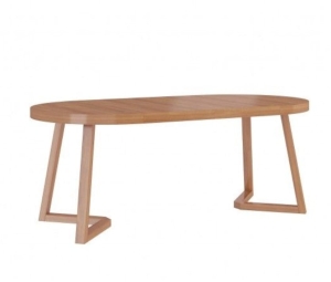 Blat stołu pokryty jest fornirem z litym obrzeżem drewnianym. Podstawa stołu została wykonana z litego drewna dębowego.