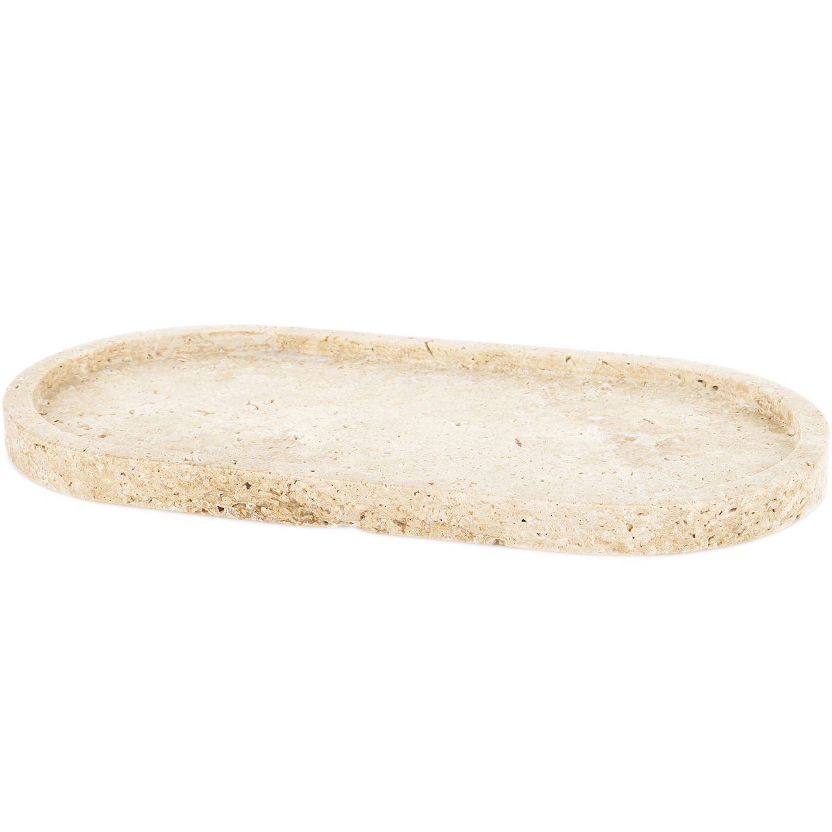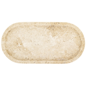 Dekoracyjna owalna taca z naturalnego trawertynu, która doda uroku Twojemu wnętrzu. Najlepiej sprawdzi się do ułożenia na przykład biżuterii, pamiątek lub niewielkiej ceramiki. Trawertyn to ekologiczny, naturalny materiał, który jest trwały, odporny na uszkodzenia mechaniczne i ścieranie. Ponadto, jest materiałem łatwym do czyszczenia i utrzymania. Doskonale zaprezentuje się na toaletce, stoliku kawowym, komodzie, a nawet w łazience na blacie. Taca OVAL jest bardzo praktyczna, z pewnością w każdym wnętrzu znajdzie się na nią zastosowanie. Dodatkowo to niezwykle piękny i efektowny przedmiot, który doda ciepła i elegancji w każdym pomieszczeniu.