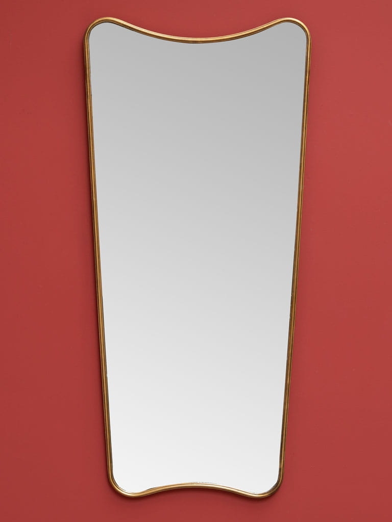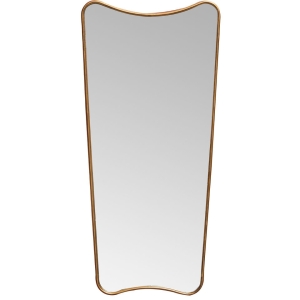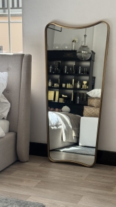 Przedstawiamy niezwykłe lustro o nietypowym kształcie, który doda każdemu wnętrzu lekkości i elegancji. Rama w odcieniu postarzanego mosiądzu subtelnie podkreśla wyjątkową formę lustra, sprawiając, że jest ono zarówno funkcjonalnym, jak i dekoracyjnym elementem wystroju. Jego delikatnie falująca linia górnej i dolnej krawędzi nadaje mu unikalny, artystyczny wygląd, który świetnie sprawdzi się w nowoczesnych, minimalistycznych oraz retro aranżacjach. Doskonale pasuje do sypialni, salonu, garderoby czy przedpokoju, gdzie może pełnić funkcję pełnowymiarowego lustra stojącego lub wiszącego. To lustro jest idealnym wyborem dla osób, które cenią oryginalne wzornictwo i chcą dodać swojemu wnętrzu wyjątkowy charakter.