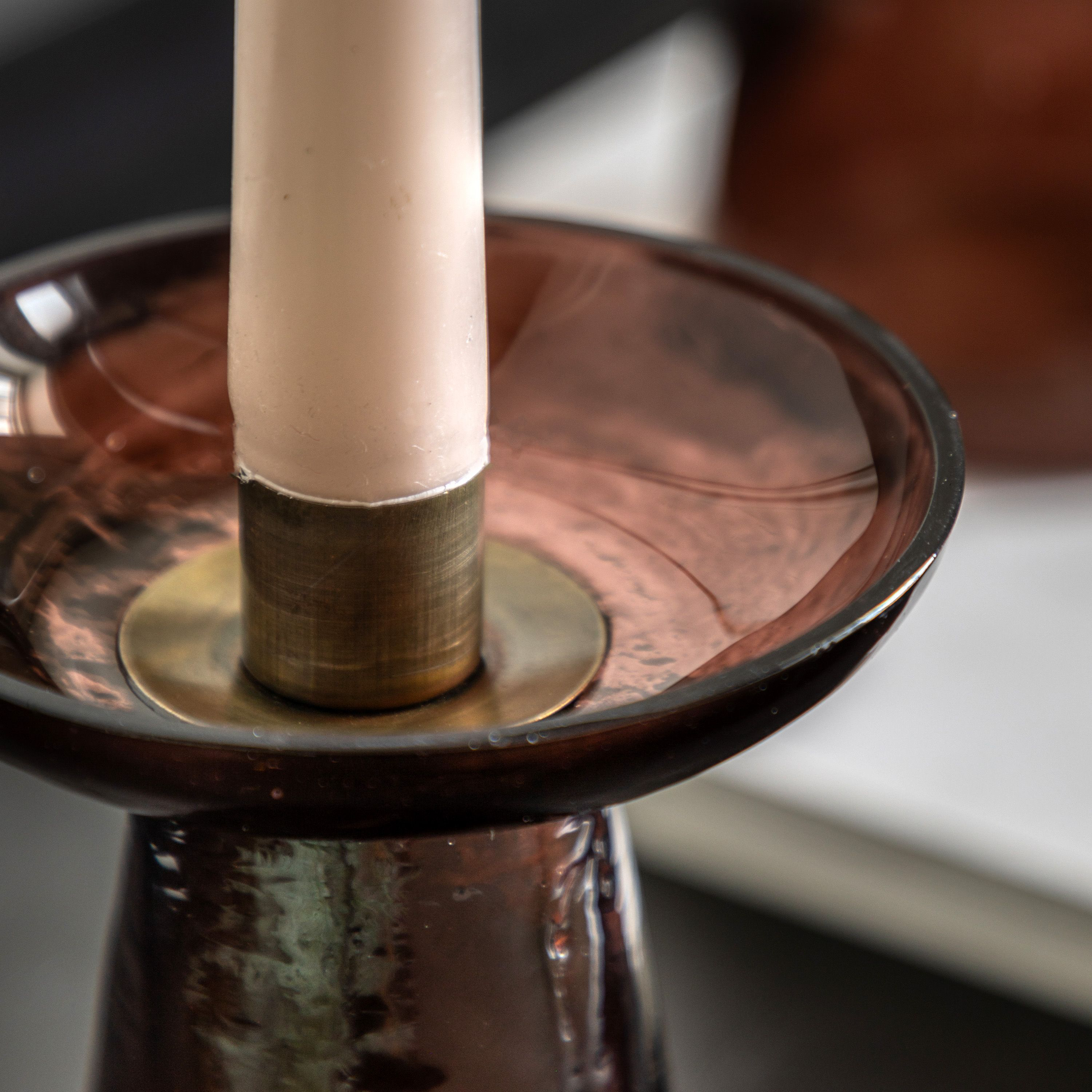 Zestaw dwóch szklanych świeczników DANIAL o prostej, eleganckiej formie w przydymionym, grafitowym odcieniu. Szkło delikatnie rozprasza światło padające z świec, tworząc bardziej nastrojowy, klimatyczny efekt. Świetnie sprawdzą się jako subtelna dekoracja stołu, komody czy konsoli zarówno w nowoczesnych, jak i bardziej klasycznych wnętrzach.