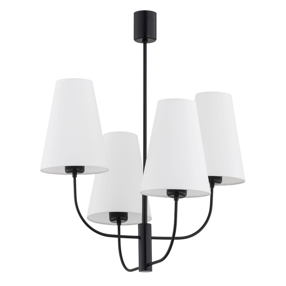 Lampa SAFIANO wyróżnia się charakterystycznymi stożkowymi abażurami, dostępnymi w kolorze białym lub wyrazistym bordowym. To nie tylko funkcjonalny element oświetleniowy, ale także designerski akcent, który doda niepowtarzalnego charakteru pomieszczeniu. Stelaże żyrandola SAFIANO wykonane są z solidnych materiałów, co zapewnia trwałość i niezawodność lampy. Możesz wybierać spośród pojedynczego kinkietu, podłużnego żyrandola idealnego nad stół jadalny oraz finezyjnych żyrandoli 3 lub 4-ramiennych. Warto zwrócić uwagę na duży żyrandol z abażurami ulokowanymi na różnych wysokościach, który stanowi niezwykle ciekawą formę oświetlenia.